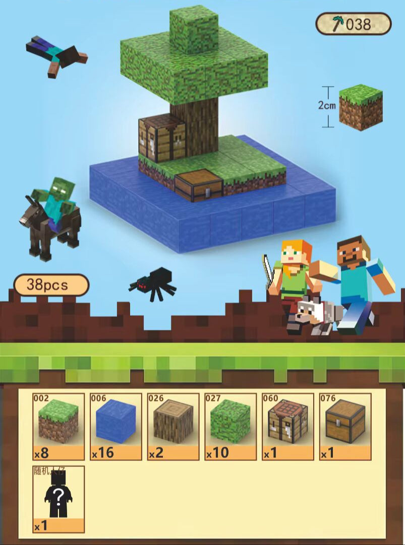 🔹 Inclusief speciale blokken – Een crafting table, kist en boombladeren!